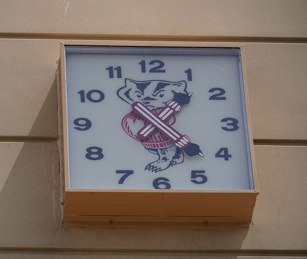 The university had two of these Bucky clocks made during the 1950s, and they have been longtime campus landmarks. One Bucky clock was originally located at an old bank building at 905 University Ave. When that building was demolished, the clock was saved and moved to its current home at 21 N. Park St.