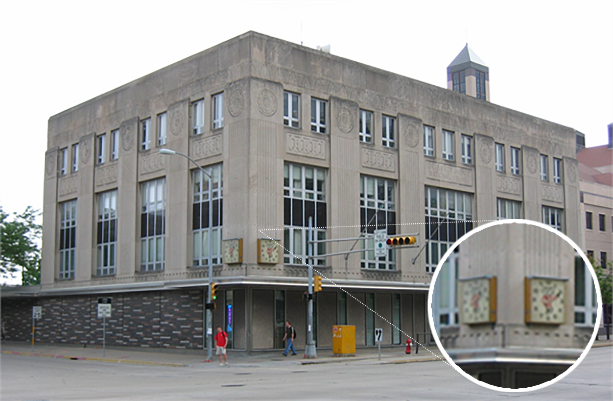 The Bucky Clock was located at First Central Bank. Wisconsin Historical Society, Wisconsin Architecture and History Inventory, First Central Bank, Madison, Dane, Wisconsin, 109923.